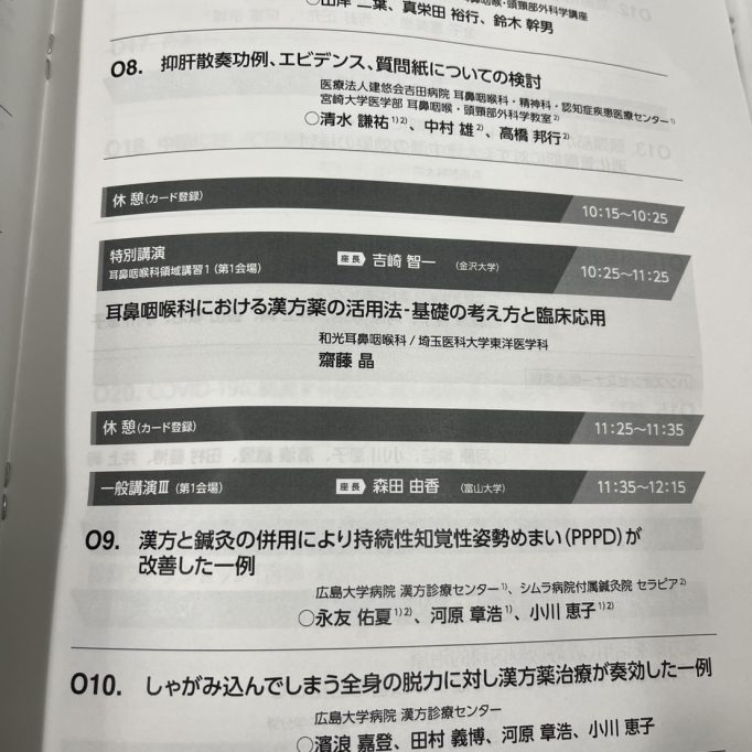 「漢方と鍼灸の併用により持続性知覚性めまい(PPPD)が改善した一例」にて筆頭登壇者として症例報告をさせて頂きました。