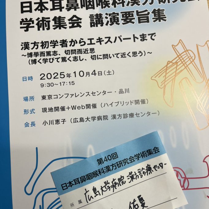 第40回耳鼻咽喉科漢方研究会学術集会に参加しました。